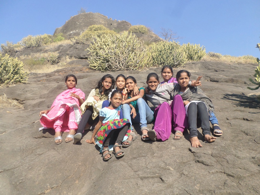 A record seventy-four girls left our Janata Vasahat neighbourhood on two busses at daybreak. Hardly sleepy, we were quickly singing and dancing, pausing only to eat our breakfast. Once out of Pune, to the north we enjoyed increasingly beautiful countryside and rolling hills. Climbing through colourful villages, quaint farms, and thick forests, we finally reached the highlands of Bhimashankar late in the morning. We visited an ancient and famous temple, and bought sweets and souvenirs. Then back on the bus for another scenic two-hour journey to Shivneri Fort. The ancient fort is most famous as the birthplace of Chhatrapati Shivaji Maharaj, important in our history books as founder of the Marathi Empire. But the fort is also remarkably scenic and pleasant, and the many gates on it's ascent are impressive architectural works. One of these we found to be an ideal and memorable place to have our lunch! -sitting in massive coves in the gate structure, protected from the sun and kept cool by the massive stonework. After our lunch we hiked the rest of the way to the top, pausing for a lot of photos (and water!). By the time we returned to our buses it was evening. We stopped mid-way to Pune for snacks, and arrived home at about 10:30pm, -a very long but memorable day! Below is a photo chronology to share our day with you:Acknowledgements