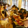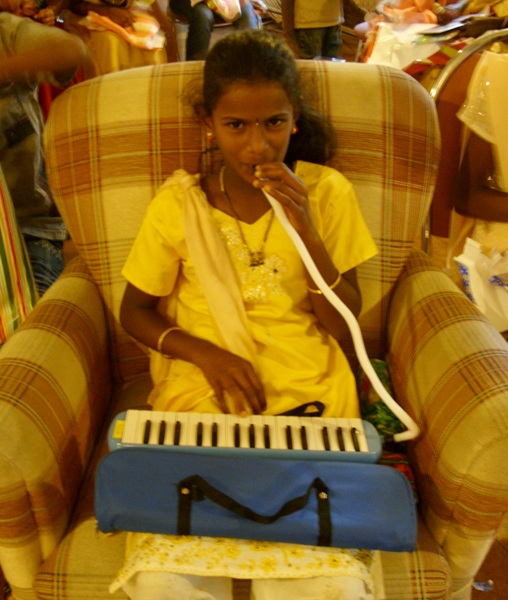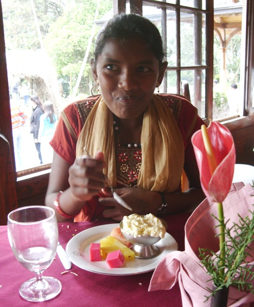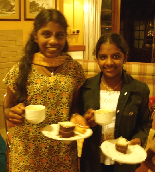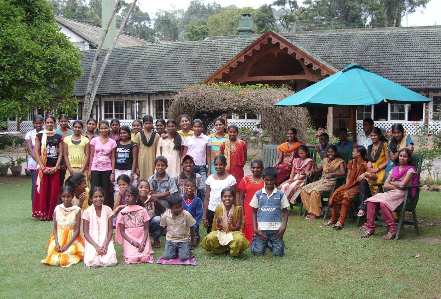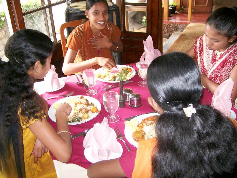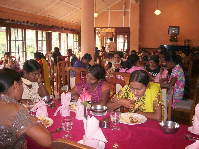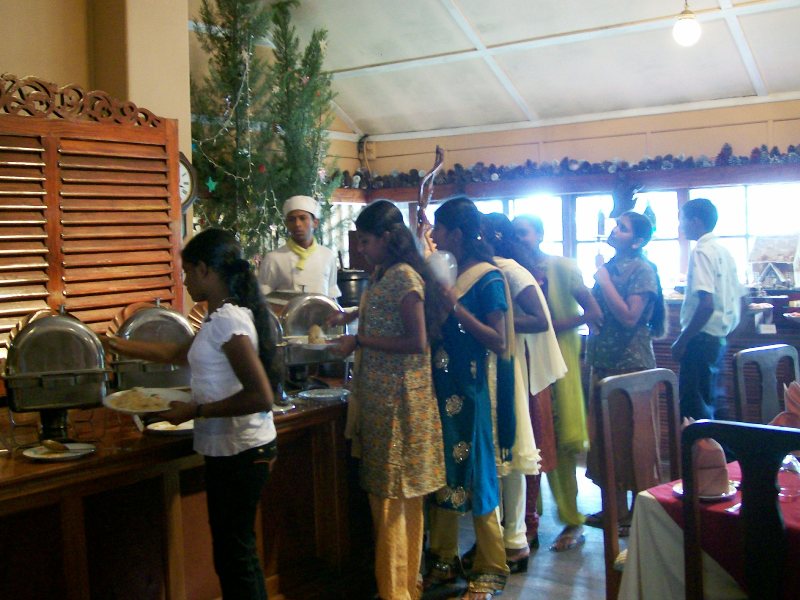 We departed Nayabedde by chartered bus at about 2:00 pm for the short ride down to Bandarawela. We were greeted at the door with chocolates, and enjoyed some free time to see our gifts and enjoy the beautiful gardens of the hotel (during a rare break in the monsoon rains!). We each had our photograph taken in the gardens, after which we eagerly filed into the dining hall for our fantastic buffet dinner and all-you-can-eat dessert! -every child's dream...Our Party