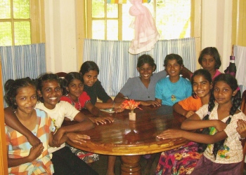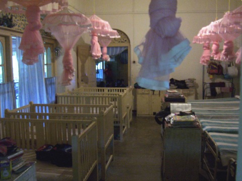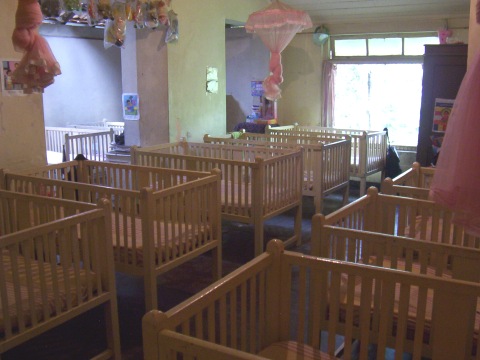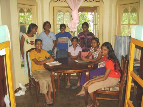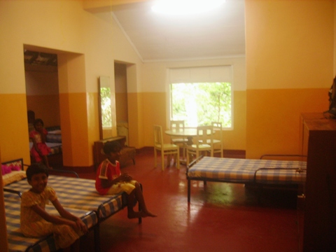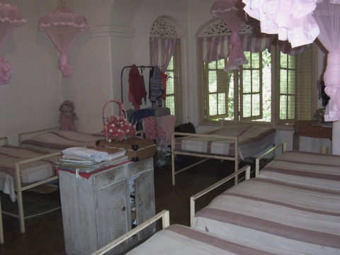 We first provided all new beds and mattresses, -52 beds total. The beds are long enough even for our oldest kids to grow! -and standard-sized, so mattresses can easily be replaced periodically. And since the beds are bunked, a lot of space was created in the rooms. So, in the attractive windowed "bay" end of each room, we put a hardwood table and four chairs, creating a wonderful study and social environment for the kids. We also provided a large mirror and dressing table for each room. Several large storage cabinets were also provided for each room, -large enough for each girl to have plenty of secure space for her own clothes, books, and other belongings. Finally, the single hanging light bulb was replaced in each room by bright new multi-light fixtures.